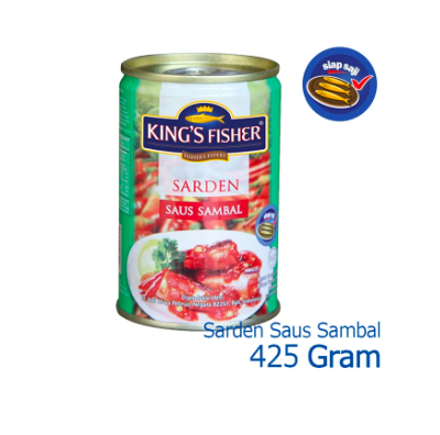 Paket 1 dus 24pc King's Fisher Sarden saus sambal 425g Makanan Kaleng