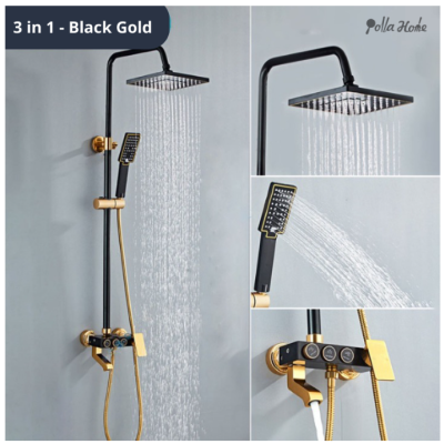 Ollahom Shower Kamar Mandi 1 Set + Kran Cabang/ Shower Mandi Set Stenlis/Mandi Shower Set Full Stainles Shower Column Set Mandi Paket