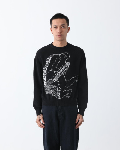 Regular fit knit round neck rib with soft rib cuffs at sleeves and hem.