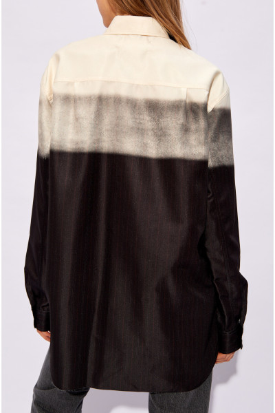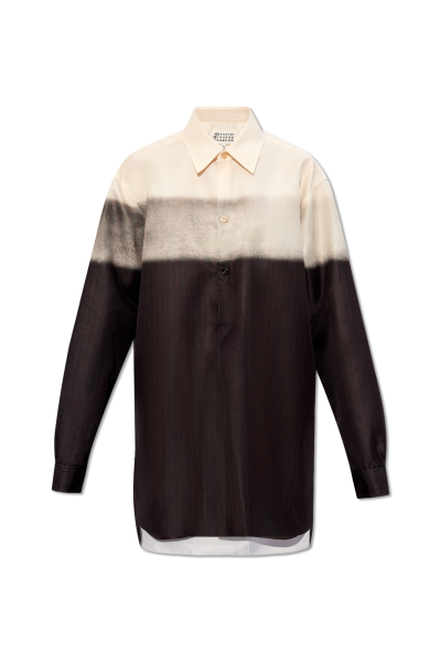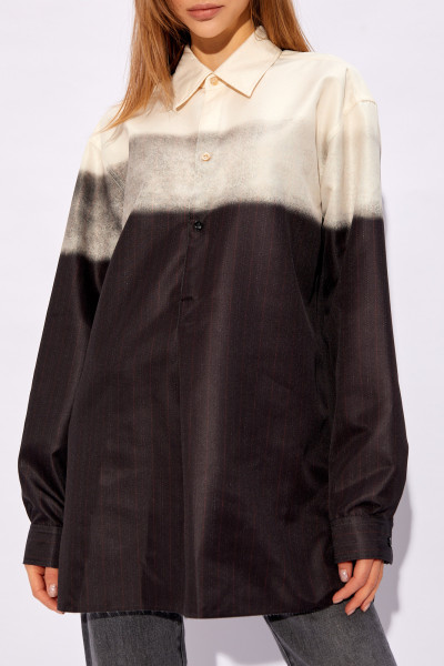 Yellow, grey and black shirt from Maison Margiela. Fastened with buttons, this long sleeve design is decorated with a stripe pattern.