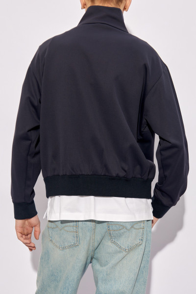 Navy and white sweatshirt from Bally. Fastened with a zip, this garment features a logo embroidery, stand collar, two slip pockets, ribbed trims and long sleeves with side stripes.