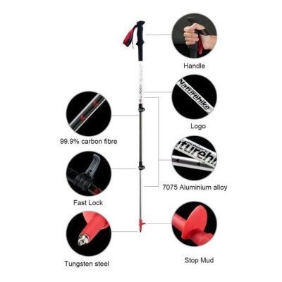 Made of #7075 aviation alin alloy and high strength carbon fiber, with ex-long handle, adjustable wrist band, f outer locker and durable pole tip.