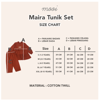 Material : Premium Cotton Twill - Soft, lightweight and comfortable, perfect for daily wear - Elastic waistband for easy wearing - Embroidery details at chest - Button closure at the back (JANGAN JADIKAN UMUR SEBAGAI PATOKAN SIZE, MOHON DIUKUR KE ANAK MASING2 KARENA SETIAP ANAK BERBEDA) TOLERANSI UKURAN +- 1 CM Warna produk asli mungkin akan sedikit berbeda denganfoto, karena efek layar HP atau komputer yang berbeda-beda. Mohon perhatikan detail size, dan mohon pengertiannya untuk toleransi ukuran jahitan +/- (1-2cm) dikarenakan seluruh proses produksi semua menggunakan tenaga SDM. Produk ini telah terstandarisasi sesuai dengan SNI No. 092/LSP/QI/02-VI/2022