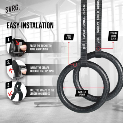 Gymnastic Ring Sangat cocok untuk Anda yang ingin membentuk otot-otot tubuh bagian atas, otot bicep, punggung, dada, bahu, dan perut secara efektif. Anda dapat melakukan bermacam-macam exercise, mulai dari : ring row, pull-ups, ring push-ups, ring dips, muscle up, bicep curl, L-Sit, leg raise, dan berbagai macam exercise lainnya. Dibutuhkan kekuatan lengan untuk melakukan hal ini. Spesifikasi : Material Ring : High Quality ABS / Wood Diameter Ring Luar : 23,4cm Diameter Ring Dalam : 17,8cm Tebal Ring : 2,8cm Bahan Tali : Polyester Panjang Tali : 450cm Lebar Tali : 2,5cm Inside the box : - 2x ABS Gymnastic ring - 2x High-strength nylon webbing straps with quick-lock buckles - 2x Ring Tape