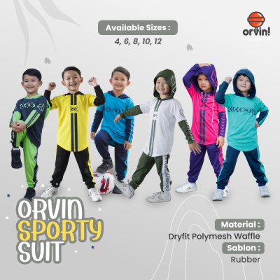 harga satu set, setelan celana dan baju olahraga anak laki laki merk ORVIN tema SPORTYSUIT ~ Olahraga jadi makin seru! Anak kecil biasanya lincah, aktif dan energinya gak habis-habis. Bunda bisa salurkan energi mereka secara positif dengan berolahraga. Untuk edisi kali ini ORVIN hadir dengan tema #SPORTY dan warna yang bisa bikin sikecil makin semangat buat berolahraga. Spesifikasi Orvin Sportysuit Material : dryfit polymesh waffle (kain ringan, lembut, menyerap keringat, cepat kering cocok untuk olahraga) Sablon rubber foam Available size 4/6/8/10/12 Tahun