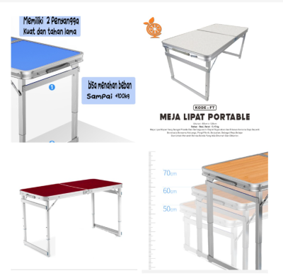 Meja lipat koper yang sangat praktis dan serbaguna ini dapat digunakan dan dibawa kemana saja seperti berwisata bersama keluarga, pergi piknik, dan untuk menaruh benda-benda yang ada dirumah dan dikantor. Memiliki 3 tingkatan ketinggian yang dirancang dengan desain yang mudah ditarik sesuai dengan kebutuhan Anda.