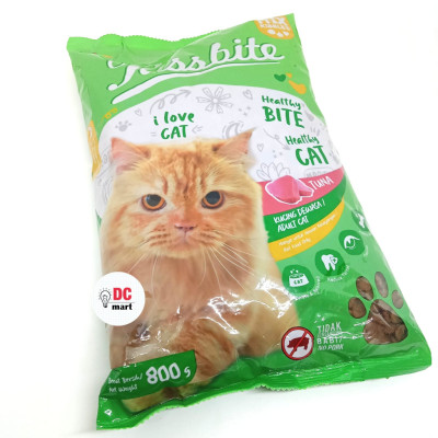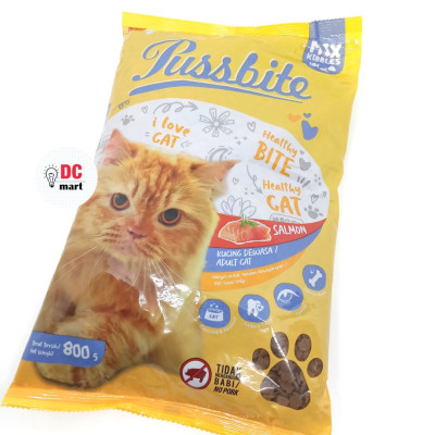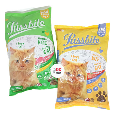 Pussbite kemasan freshpack 800 Gram makanan kucing kering untuk kucing dewasa, NO PORK terdiri dari 2 varian rasa : - Tuna - Salmon