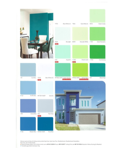 VINILEX Readymix kemasan 1KG pada link produk di atas hanya tersedia dalam pilihan warna sebagai berikut: a. 300 WHITE b. 300SS WHITE c. 8005 BARLEY WHITE d. 8006 LILY WHITE e. 926 LIGHT CREAM f. 934 SUNLIGHT g. 937 ARCTIC BLUE h. 942 CORAL SPRING i. 943 DREAM LAND j. 951 GREEN ROMANTIC k. 952 WISDOM BLUE l. BS9103 BLACK KEUNGGULAN 1. Tahan terhadap Gangguan Jamur 2. Dapat Dicuci dan Tahan Disikat 1.200 kali 3. Tahan Sinar Matahari dan Warna Lebih Awet 4. Water-Based 5. Tampilan Akhir Matt 6. Cocok Digunakan untuk Eksterior dan Interior DESKRIPSI PRODUK NIPPON VINILEX adalah cat emulsi berkualitas tinggi dengan basis kopolimer vinyl akrilik. Produk ini mempunyai daya tutup dan daya tahan yang sangat baik, serta lapisan film yang rata dan halus. Cat ini dapat digunakan untuk dinding interior dan eksterior serta langit-langit berbahan dasar asbes, batako, beton, papan, mortar, dan lain sebagainya. Untuk mendapatkan hasil yang terbaik, dianjurkan untuk menggunakan wall sealer. Wall Sealer: INTERIOR : 3-IN-1 ANTI-ALKALI PRIMER SEALER/5400 LL SEALER/5200 LL SEALER Eksterior: 3-IN-1 ANTI-ALKALI PRIMER SEALER/5400 LL SEALER/5100 LL SEALER Informasi lebih lanjut mengenai Nippon Paint Indonesia, dapat mengunjungi site kami dan menghubungi kami melalui enquiry.