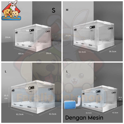 1 x TECHMY Box Pengering Hewan Pe Pet Drying Box Hair Blow Dryer - T100 2 x Tray 6 x Roda Spesifikasi TECHMY Box Pengering Hewan Pe Pet Drying Box Hair Blow Dryer - T100 Material PP, ABS MESIN SPESIFIKASI : MATERIAL : PLASTIK ABS DAYA : 600W FREKUENSI 50Hz TEGANGAN 220v WARNA : RANDOM UKURAN DRIYER : 24 X 16 X 10 CM UKURAN SELANG : 21,5 CM - 76 CM