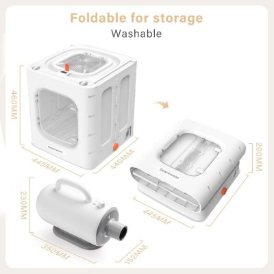 UV+Dryer Box FEATURES : ~ Ready Stock & Fast Shipping ~ Quick Hair Drying - Save Time & Energy ~ 360° Three-Dimensional Air-Drying - Turbo Blower & Bottom Blower ~ Negative Ion Hair Dryer to make pet hair smoother ~ Say Goodbye to Flying Hair - Easy to clean ~ Warm & Dry - Pet can enjoy the drying process ~ 5 Temperature Control Mode for different situation ~ Safety Control - Automatic Power Off When Overheating ~ UV Sterilization - Disinfect pet dishes and toys to keep the interior clean. Protect the health of owners and pets **(Premium Type only) ~ Suitable For Small & Medium Pets < 12kg ⚡️DETAILS : STANDARD Size : 50*45cm Watt :1000W Colour : White Suitable For : Small & Medium Pets < 12kg Temp Range : 25°C – 50°C Extra Function : None Extra Function : UV Disinfection