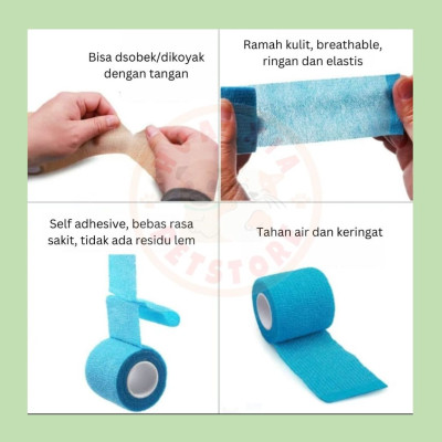Pet Dog Cat Aid Elastic Adhesive Bandage adalah perban yang dapat digunakan untuk membalut bagian tubuh tertentu hewan peliharaan seperti anjing, kucing, dll maupun pada manusia. Keunggulan: * Mudah digunakan * Self-adhesive, mempermudah pengunaan karena tidak memerlukan lem / perekat seperti perban coklat / klip / pin. * Ramah kulit, ringan, kuat, breathable, dan elastis. * Elastis, mempermudah pemakaian pada bagian tubuh yang tertekuk spt : siku, kaki, dll. * Dapat langsung dikoyak maupun digunting. * Tidak menimbulkan rasa sakit ketika dibuka karena tidak menarik bulu / rambut seperti halnya perban pada umunya. * Tidak meninggalkan residu lem. Ukuran perban: 2,5 cm x 4,5 m 5,0 cm x 4,5 m 7,5 cm x 4,5 m 10,0 cm x 4,5 m Tersedia dalam beberapa varian warna: Orange Light Pink Brown Black Purple White Green Tosca Yellow Red