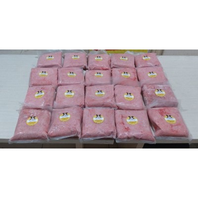 Karena digiling halus, sangat aman untuk di konsumsi oleh anjing ukuran kecil (pomeranian saya makan produk ini). TIDAK SEPERTI RAW FOOD LAINNYA YANG MASIH KASAR DAN BESAR2 TULANGNYA. DIKIRIM DALAM KEMASAN PER 1kg , UNTUK MEMUDAHKAN PENYAJIAN Keuntungan menggunakan RAW FOOD : 1. lebih sehat dan tidak pengandung bahan pengawet makanan, sehingga aman untuk pencernaan hewan peliharaan kita. 2. Hewan peliharaan terutama anjing, membutuhkan makanan yang mengandung protein sebagai sumber protein, dan ini terdapat pada daging / raw food ini. 3. Hewan pada umumnya lebih suka mengkonsumsi makanan mentah, sehingga tidak perlu di masak lagi. Tapi kalau kalian bukan aliran raw food boleh kok dimasak lagi. Cara Penyajian : 1. Bisa langsung di berikan pada hewan peliharaan secara mentah 2. Bisa dimasak lagi dengan cara direbus atau digongseng seperti di video saya. 3. Boleh dicampur nasi dan sayuran lagi sebagai pelengkap jika di anggap perlu. TANYA: Mengapa dagingnya murah? apakah memakai daging tidak asli? JAWAB: Daging ini daging ayam asli. Daging ini diambil dari sisa dr pabrik pemotongan ayam seperti tulang muda, serpihan daging, rongkong, dll yg kemudian digiling lagi. Dimana anjing juga memerlukan tulang untuk menambah kalsium.