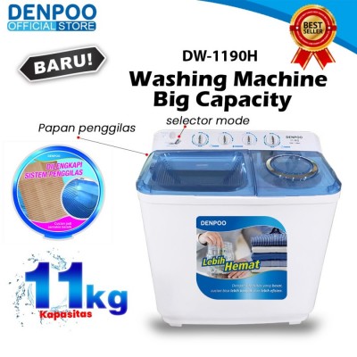 DENPOO MESIN CUCI 2 TABUNG DW 1190H (11KG) TECHNOLOGI PAPAN PENGGILAS