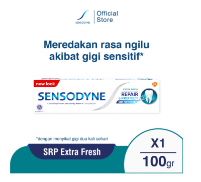 Pasta Gigi Sensodyne Repair & Protect Extra Fresh dengan teknologi NOVAMIN mampu membentuk lapisan mineral pelindung gigi 1.5x lebih kuat dari lapisan dentin (lapisan pelindung alami gigi) dengan kesegaran lebih lama. Perlindungan jangka panjang terhadap gigi sensitif (dengan pemakaian 2x sehari secara teratur). Tersertifikasi Halal.