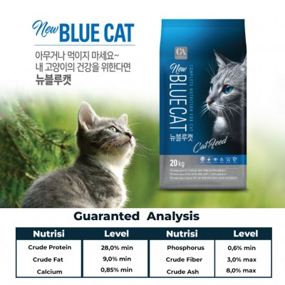 LIMITED OFFER BUY 1 GET 1 FREE ! Gratis Produk Yang Sama Tersedia Produk Beli 1 Gratis 1 dan Combo Hemat 3 Pack ! Makanan Kucing New Blue Cat 1 Kg EXP DESEMBER 2024 Pork Free Makanan terbaik untuk kesehatan kucing anda Varian ukuran kemasan : 1 Kg, 5 Kg, 7 Kg dan 15 Kg Rekomendasi Usia : Kucing diatas 4 bulan Kenapa New Blue Cat? 1. Membuat kulit dan rambut kucing anda berkilau 2. Menjaga kesahatan mata kucing 3. Mengurangi bau pada kotoran/feses kucing 4. Mengandung Asam Lemak dan Omega 3, Omega 6 serta Omega 8 5. Mengatasi hairball pada kucing Keunggulan New Blue Cat dibanding produk sejenisnya: - Terdiri atas banyak serat sehingga bisa mengatasi hariball pada rambut kucing. Serta membantu menghambat pembentukan bola rambut - Membantu kesehtan kulit kucing. Karena terdiri atas omega3,omega 6 dan omega 8 serta asam lemak yang seimbang untuk membantu menjaga keseimbangan kesehatan kulit - Membantu mengatasi sembelit sehingga membuat pencernaan jadi lebih sehat - Memperkuat kesehatan mata kucing Menganudng taurin dan vitamin A untuk menjaga kesehatan mata kucing - Membantu menjaga kulit dan mantel Mengandung asam lemak esensial untuk membantu menjaga kulit tetap berkilau - Membantu mengurangi bau feses Mengandung Yucca Ekstrak heral yang membantu mengurangi bau tak sedap pada feses kucing Komposisi: Protein kasar 28% atau lebih, lemak kasar 9% atau lebih, kalsium 0,85% atau lebih , fosfor 0,6% atau lebih, serta kasar 3% atau leibih, tepung kasar 8% atau lebih, moisture 12% atau kurang. "New Blue Cat The Best Choice Pet Food"