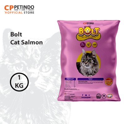 BOLT Salmon Cat Food - 1 Kg merupakan pakan kucing usia di atas 1 tahun, yang diperkaya dengan taurine, antioksidan, vitamin dan mineral. Bermanfaat untuk membuat kulit sehat dan bulu berkilau, serta mengurangi resiko FLUTD (penyakit saluran kemih pada kucing).