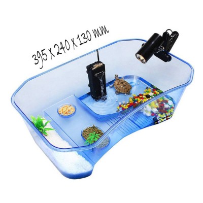 Kandang di desain khusus utk kura2, bentuk wadah 100% seperti difoto, terdapat bagian utk pasir, tempat makan+berjemur dan kolam utk berenang.