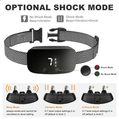 Bark Training Collar With 7 Adjustable Sensitivity Intensity Beep Vibration