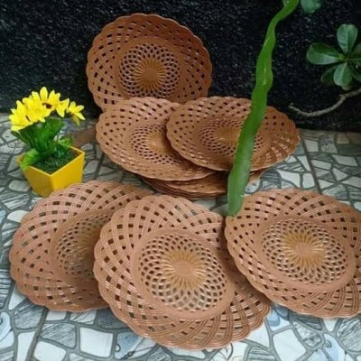 PIRING ROTAN PLASTIK COKLAT - ISI 12 PCS