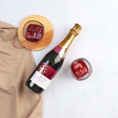 Jus anggur merah berkarbonasi. Produk dari Spanyol.
