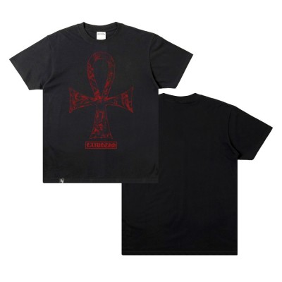 The 'Crucis Inferni' t-shirt features the Ankh symbol on the front which also depicts a fiery scenery of hell, crafted by Lawless Jakarta's own Takjemujemu, screen printed with quality plastisol ink on heavy 24s cotton short sleeve t-shirt which features a seamless double needled 2cm collar, taped neck and shoulders.