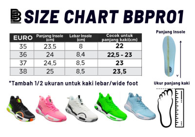 35 : 23,5 cm(Cocok untuk ukuran panjang kaki 22 cm)