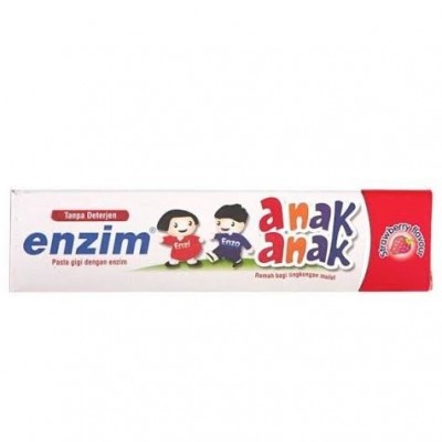 Pasta Gigi Enzim anak-anak rasa strawberry, uk 63g. Expired date 1-7-2025. Produk ini kami jamin asli, kami tidak menjual produk palsu. Enzim anak-anak dikembangkan khusus untuk anak-anak dengan komposisi yang sesuai dan rasa yang lembut dan tanpa deterjen. Pembelian 4 pc dapat packing dus.