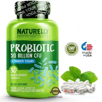About the product : ★ 11 Probiotic Strains with 50 Billion active cultures ★ Promotes Growth of Healthy Gut Bacteria ★ Helps Relieve Digestive Discomfort ★ Boosts Immune System Function ★ No refrigeration required What Makes the NATURELO Probiotic Different? ★ Superior 11 Probiotic Strain Digestive Health Formula. Our Probiotics contain 50 Billion Live Cultures for maximum potency and quick results. Advanced Formula with All Essential Lactobacillus and Bifidobacterium Strains: L. Acidophilus, L. Plantarum, L. Rhamnosus, L. Paracasei, L. Salivarius, L. Casei, S. Thermophilus, B. Longum, B. Lactis, B. Breve, B. Bifidum. ★ Using DRCAPS Patented delayed release technology to protects each capsule from stomach acid to ensure the probiotics are delivered to your intestines alive. The main challenge for the Probiotics is to be able to get through the stomach acids. Most die in the process and never make it to the small intestine. Our Probiotics feature a unique stomach acid protection system that increases the survivability. ★ Benefits of our High-Potency Probiotic Supplement : • Promotes Growth of Healthy Gut Bacteria and Healthy pH Levels • Supports normal absorption and assimilation of nutrients • Boosts Immune System Function • May help with occasional gas, boating or traveler’s diarrhea • Can be Used in a Colon Cleanse Program ★ 3 Year Shelf Life - No Refrigeration Required. Our Probiotics supplements are Shelf Stable and Don't Require Refrigeration. However, if you don't live in a cool, dry place or keep your home below 78⁰F (25⁰C), it is best to store your bottle in the fridge, when/if you can. ★ 100% Natural & non-GMO ingredients. Using only the latest technologies, we are able to develop a superior probiotic formula that is 100% pure and natural with Non-GMO ingredients. ★ Proudly Made In USA. All our supplements are manufactured in the USA. We establish stringent quality control standards in our manufacturing facility and manufacture all our supplements to exceed expectations set by cGMP (Current Good Manufacturing Practices). Being a Professional Grade Supplement Company means that we use only natural and high-grade raw ingredients, which are routinely tested for purity and quality. ★ The product does not contain any soy, sugar, gluten, eggs, yeast, maltodextrin, magnesium stearate, animal derivatives, artificial flavors or preservatives. Content : – 30 capsules Directions : – Adults take 1 capsule per day with a full glass of water. Best taken on an empty stomach. Ingredients : – See product image above