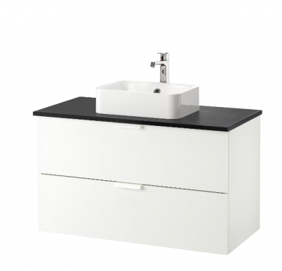 Meja wastafel dg meja ukuran 45x32, putih/efek marmer hitam keran brogrund, 102x49x72 cm