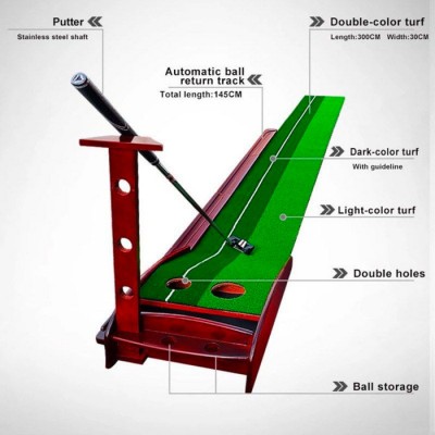 PGM Wooden Golf Putting Green Mat Trainer 3M With Auto Ball Return
