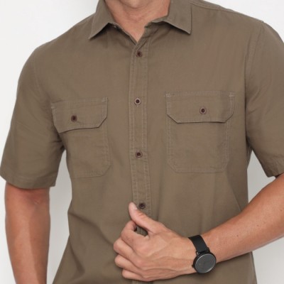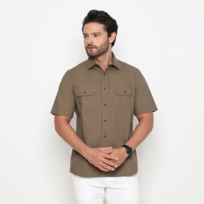 RICARDO Kemeja Pria Polos Coklat 2 Saku Lengan Pendek 32316