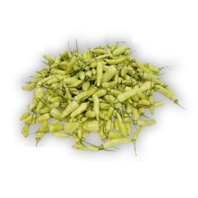 Cabe Rawit Putih mempunyai bentuk kecil pendek, berwarna putih kehijauan. Cabe Rawit Putih mengandung vitamin C. Cabe Rawit Putij dapat disimpan di kulkas agar tetap segar dan tahan 3 sampai 4 hari.