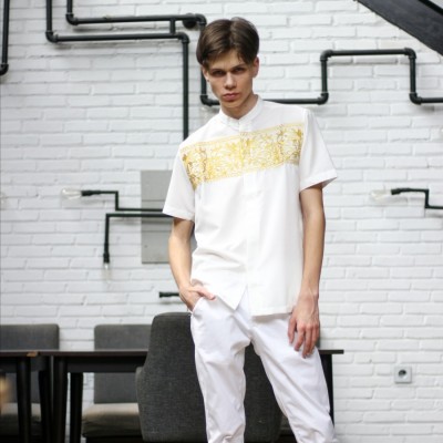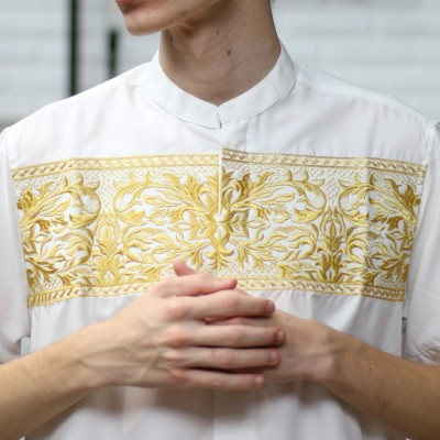 RICARDO Baju Koko Pria Putih Bordir Gold Lengan Pendek 32418