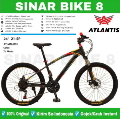 Sepeda Gunung MTB ATLANTIS 735 ,760 Disc Brake 24" 26" 27.5" Inch - Orange (735), 24 Inch