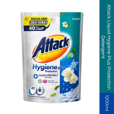 Attack Hygiene Plus Protection Liquid merupakan Deterjen cair konsentrat berteknologi tinggi dari Jepang yang cocok untuk semua jenis mesin cuci, larut sempurna hingga ke serat kain dan mudah dibilas tanpa sisa deterjen pada pakaian maupun mesin cuci. Membersihkan dan merawat pakaian dengan keunggulan: