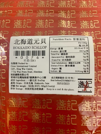 Dried Hokkaido Scallop 300 gram Hokkaido Scallop (PREMIUM QUALITY) - Makanan kesehatan alami dari perairan yang tidak tercemar . Scallop adalah nama umum sebuah kerang laut atau kerang air asin . Daging scallop kering jika sudah direndam akan empuk serta kaya manfaat bagi tubuh. Scallop merupakan sumber vitamin B12, yaitu nutrisi penting bagi kesehatan kardiovaskular sehingga baik untuk menjaga kesehatan jantung, kaya akan protein baik untuk pertumbuhan tubuh