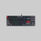 - Kombinasi warna Hitam dan Abu-abu pada Keycaps dengan Aksen Merah pada tombol Esc dan Enter
