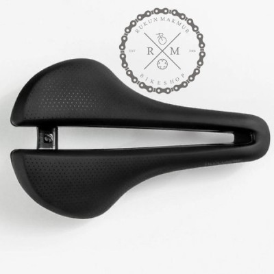 An aero road saddle with a full cutout using the latest biomechanical research to minimize soft-tissue pressure while maximizing power and sustained comfort.