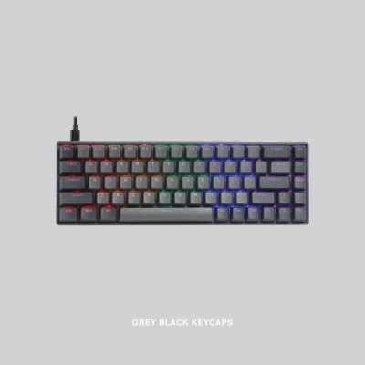 - Kombinasi warna Hitam dan Abu-abu pada Keycaps dengan Aksen Merah pada tombol Esc dan Enter