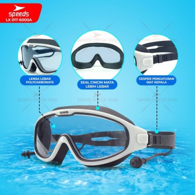 Kacamata renang dengan frame yang besar, memiliki fitur anti fog dan uv protection yang membuat penglihatan anda di dalam kolam renang tetap jelas. Dengan material yang lembut membuat anda tetap nyaman menggunakan kacamata renang ini.