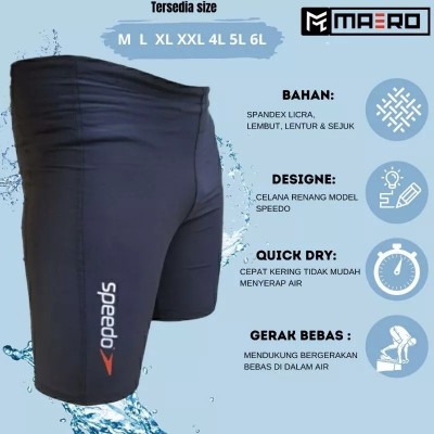 Celana renang pria dewasa Black Pro plain size normal dan jumbo - Speedo black, XL