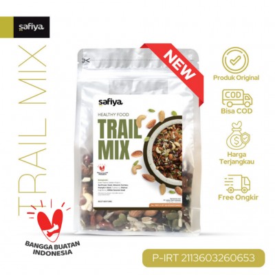 No. P-IRT 2113603260653 Product Review: Trail Mix Original Dried Fruit Seed Nut Trail Mix merupakan campuran dari buah kering, biji-bijian, dan berbagai macam jenis kacang yang di olah secara di panggang. Trail Mix Safiya memiliki rasa original, jadi cocok untuk temen cemilan Safiyan dirumah. Manfaat Trail Mix : 1.Tinggi Protein 2. Sumber Lemak Sehat 3. Mencegah Penyakit Jantung 4. Tinggi antioksidan yang baik Komposisi : Dark Raisin, Golden Raisin, Sunflower Seed, Almond, Cashew, Pumpkin Seed, Cranberry, Walnut, Goji Berry, White Sesame Seed Mengandung alergen lihat daftar bahan yang dicetak tebal.
