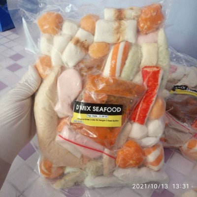 berat 950 gr , hampir 1 kg . HALAL kemasan vacum pack isi lengkap aneka macam bakso seafoods Free bumbu steamboat cocok untuk teman pelengkap bbq atau grild pesanan yang masuk akan di kirim dan sampai di hari itu jg . untuk rasa di jamin enak . silahkan di order .