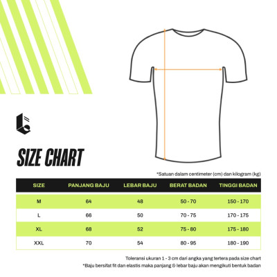 Tipe Baju: Slim Fit T-Shirt dengan bahan Poly-Spandex (Stretch)