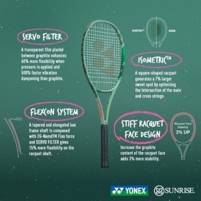 Dibandingkan dengan rangka bulat konvensional, raket ISOMETRIC™ berbentuk persegi menghasilkan sweet spot yang lebih besar dengan mengoptimalkan perpotongan senar utama dan senar silang.