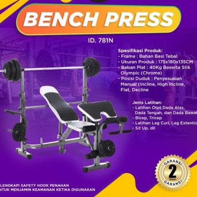 bench press dengan beban dumbell plate 40kg ( 10kg x 2pcs , 5kg x 2pcs , 2,5kg x 4pcs )