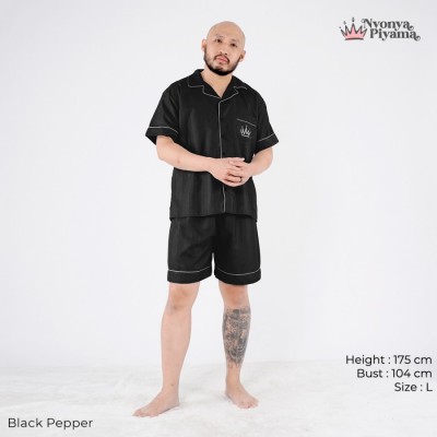• Nyonya Piyama Poly Bamboo Set Piyama Celana Pendek Pria -Herb Series 2 - Black Papper, L